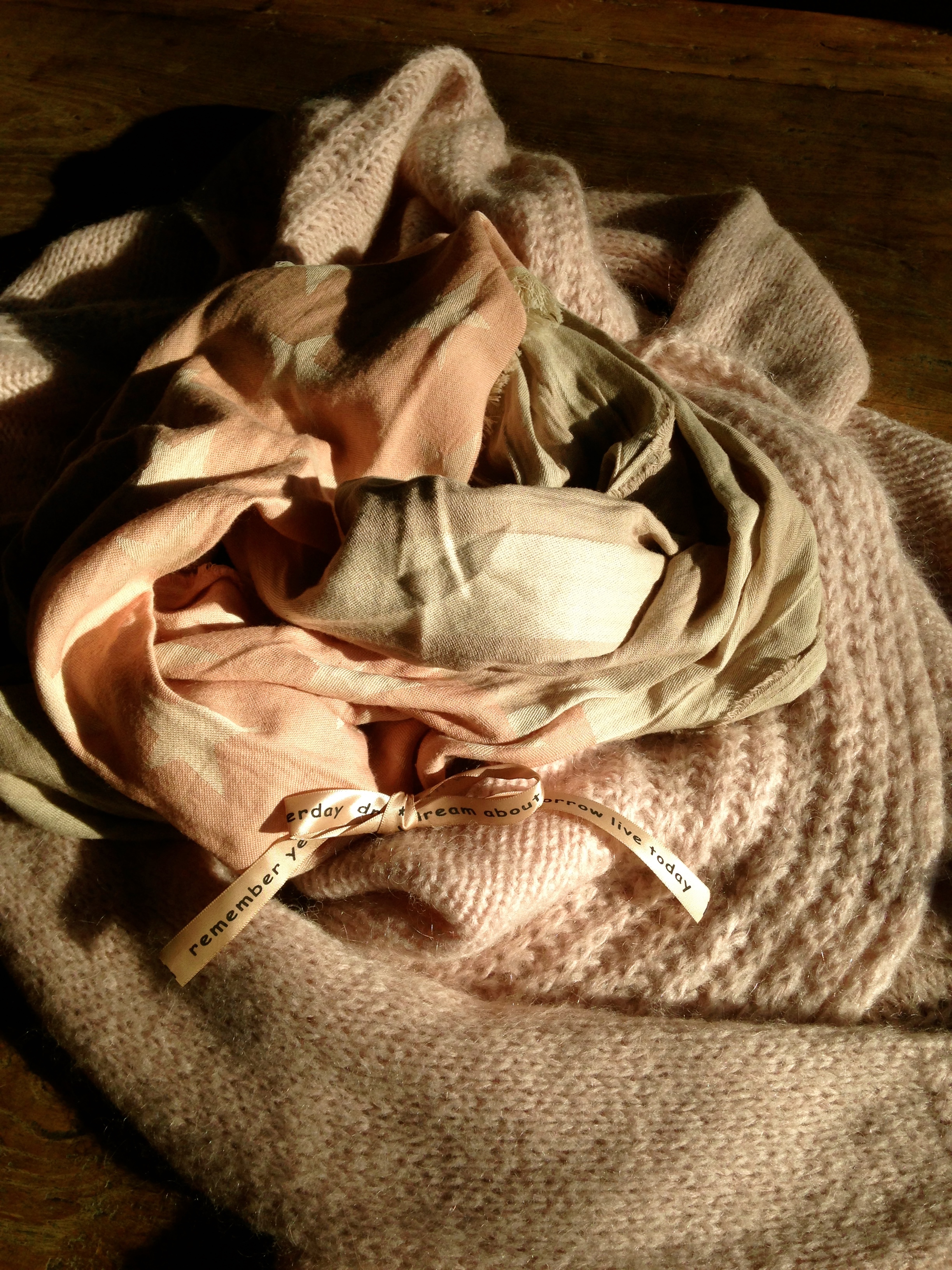 Een nieuwe shawl combineren, met de collectie “kleding met ervaring”….Gewoon Pisa..