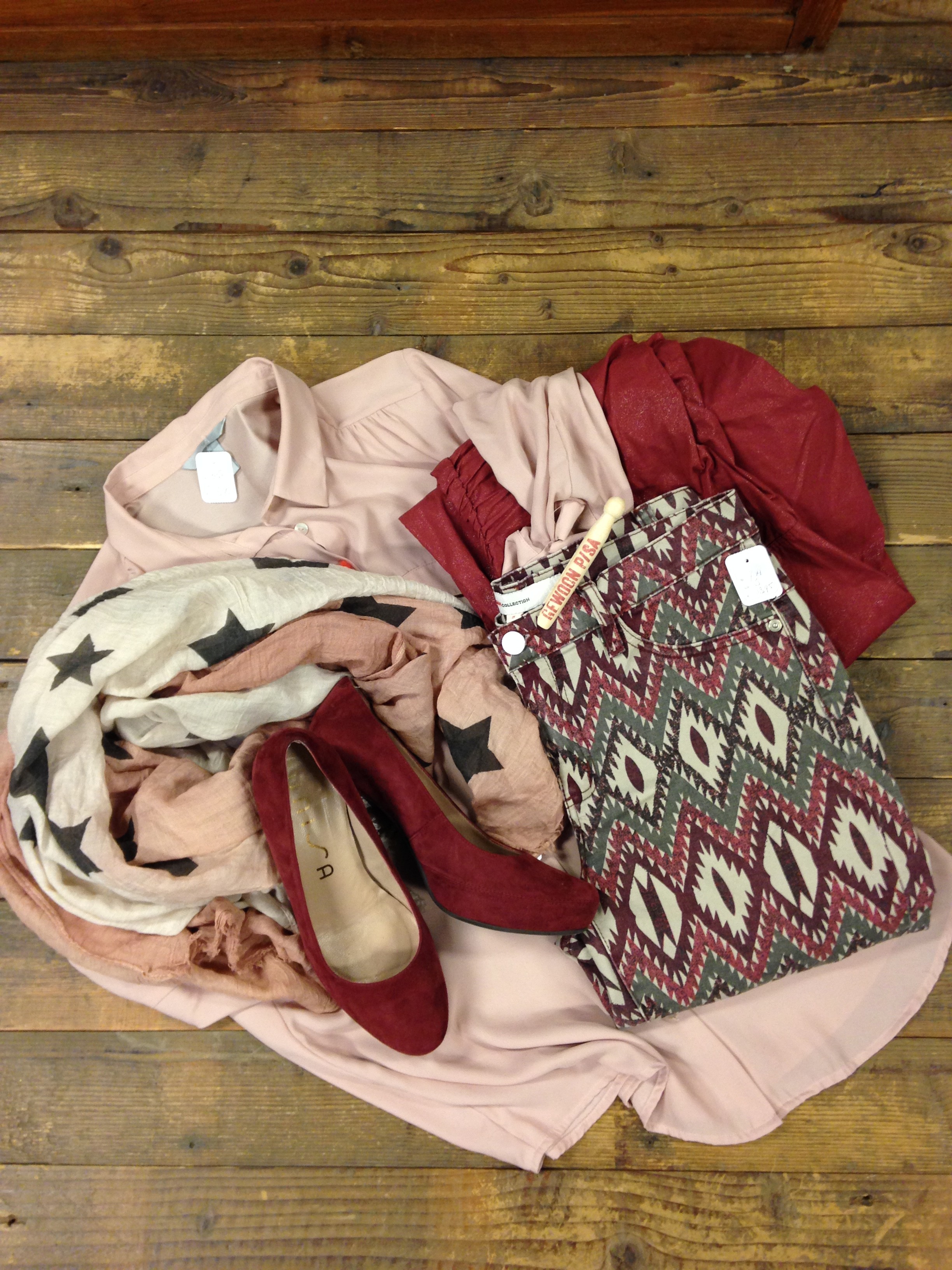 h&m Blouse, broek Geisha, Unisa Pumps, driekwart broek Sandwich, sterren shawl…..